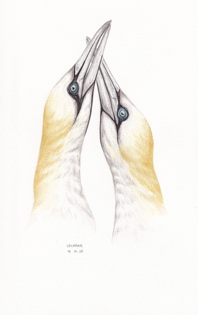 Découvrez cette aquarelle d’oiseaux originale, représentant un couple de Fous de bassan, oiseaux marins connus pour leur élégance. Réalisée entièrement à la main et unique, cette œuvre fait partie de la mini-collection "Les Amoureux du ciel", dédiée aux couples emblématiques de la nature pour la Saint-Valentin.
