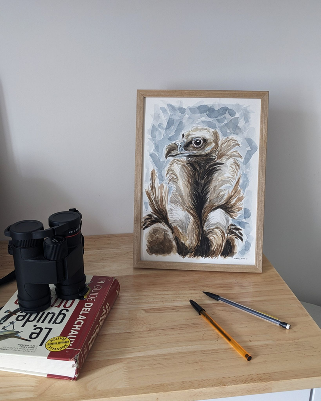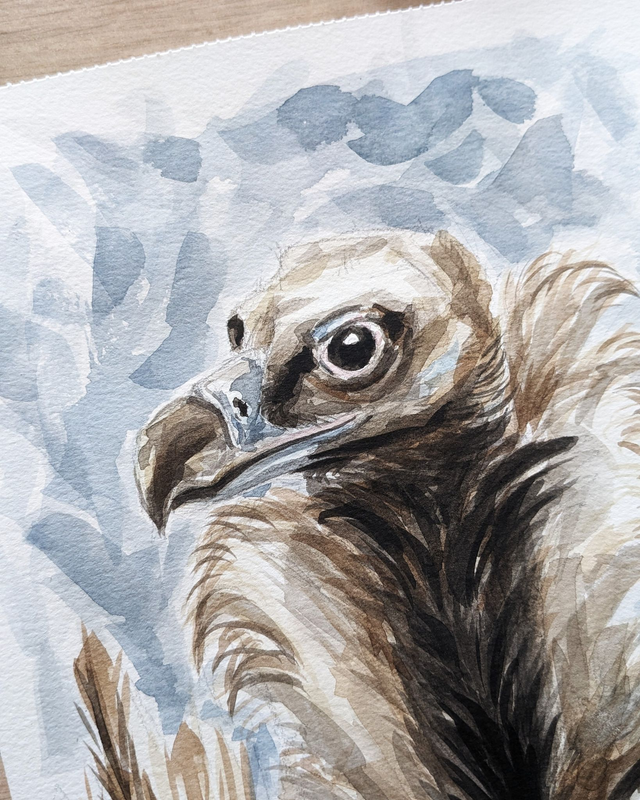 5% de la vente de cette œuvre sera reversés sous forme de don à l'association Hegalaldia pour soutenir leurs actions en faveur de la faune sauvage et des vautours dans les Pyrénées.