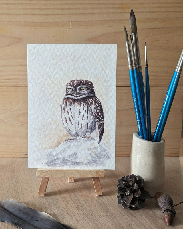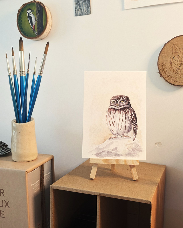 Offrez ou faites-vous plaisir avec cette jolie carte représentant une Chevêche d'Athéna !