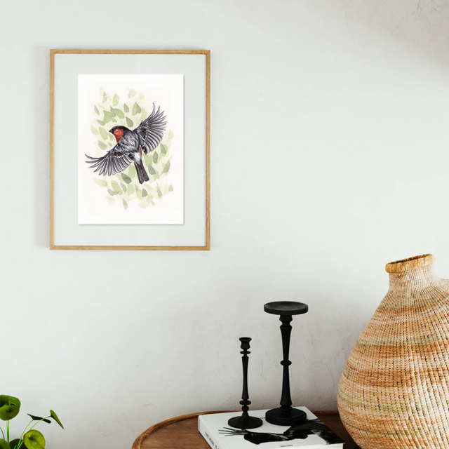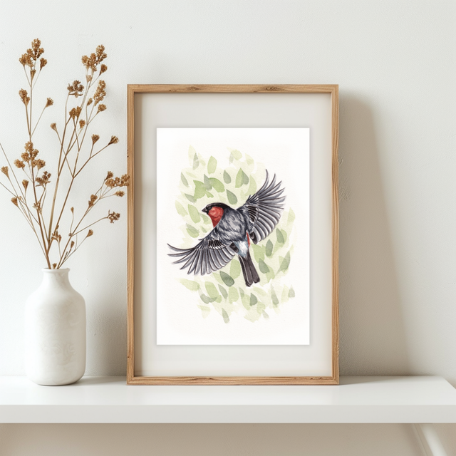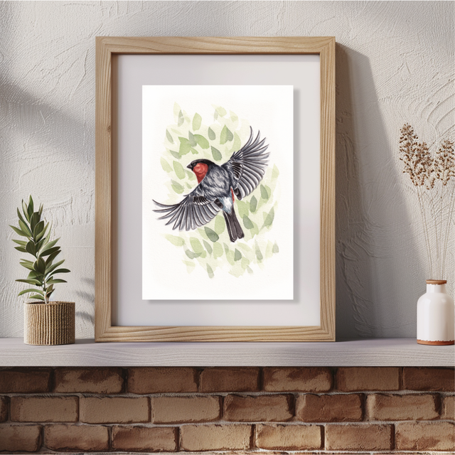 Cette aquarelle représente un Bouvreuil pivoine, oiseau très farouche et discret malgré son merveilleux ventre rouge ! Tirée de la série d'aquarelles originales "voisins à plumes", cette illustration est faite pour tous les amoureux des oiseaux qui prennent encore le temps d'observer les espèces les plus communes comme au premier jour.